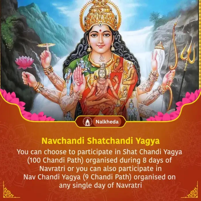 नलखेड़ा में नवचंडी और सतचंडी यज्ञ देवी दुर्गा और उनके नौ रूपों को समर्पित एक अत्यंत शुभ वैदिक अग्नि अनुष्ठान है। नलखेड़ा के विशेषज्ञ पंडितों द्वारा संपन्न इस यज्ञ में दुर्गा सप्तशती मंत्रों का जाप, हवन और समृद्धि, सुरक्षा, स्वास्थ्य और विघ्नों पर विजय हेतु दिव्य आशीर्वाद हेतु आहुतियाँ अर्पित की जाती हैं। महाकालेश्वर ज्योतिर्लिंग के निवास, आध्यात्मिक नगरी नलखेड़ा से कुछ ही दूरी पर स्थित नलखेड़ा में नवचंडी या सतचंडी यज्ञ करने से इसकी शक्ति बढ़ती है और शांति, सकारात्मकता और आध्यात्मिक उत्थान प्राप्त होता है।